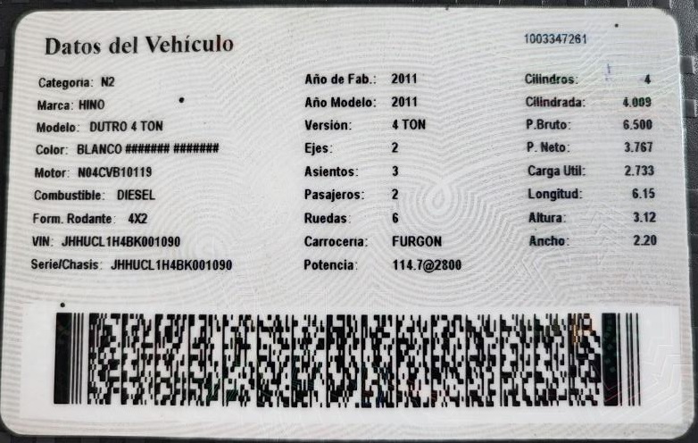 - HINO - VERSIÓN: DUTRO 4TN - AÑO. 2011 - FACTURABLE AL 100% - COLOR BLANCO PLATA - STOCK DE ENTREGA INMEDIATA - CAMION FURGON HOMOLOGADO IMPECABLE - MOTOR TURBO DIESEL DE 4.0 LT EN LÍNEA CON POTENCIA DE 115 HP A 2.800 RPM Y 390 NM DE TORQUE - TRANSMISIÓN MECÁNICA DE 6 VELOCIDADES - AMPLIO TANQUE DE COMBUSTIBLE - TRACCIÓN 4X2 POSTERIOR - TAPICERÍA ORIGINAL - NEBLINEROS DE FÁBRICA - DIRECCIÓN ASISTIDA HIDRÁULICAMENTE - CARROCERÍA FURGÓN HOMOLOGADA CON INTERIOR DE MADERA - LONGITUD: 6,15MT - ALTURA: 3,12MT - ANCHO: 2,20MT - CARGA UTIL: 2.733KG - AROS DE ACERO 16” ORIGINALES – LLANTAS (7.50 - R16) - VISÍTENOS EN AV. NICOLAS ARRIOLA - N°330, LA VICTORIA - SE ACEPTAN TARJETAS VISA, MASTERCARD Y AMERICAN EXPRESS (SOLO PARA SEPARACION O RESERVA) – CONTACTO LLAMADAS Y WHATSAPP: MAURO CHICCHIRICHI 9-8-1_2-2-6_2-1-2 NUEVE, OCHO, UNO, DOS, DOS, SEIS, DOS, UNO, DOS
